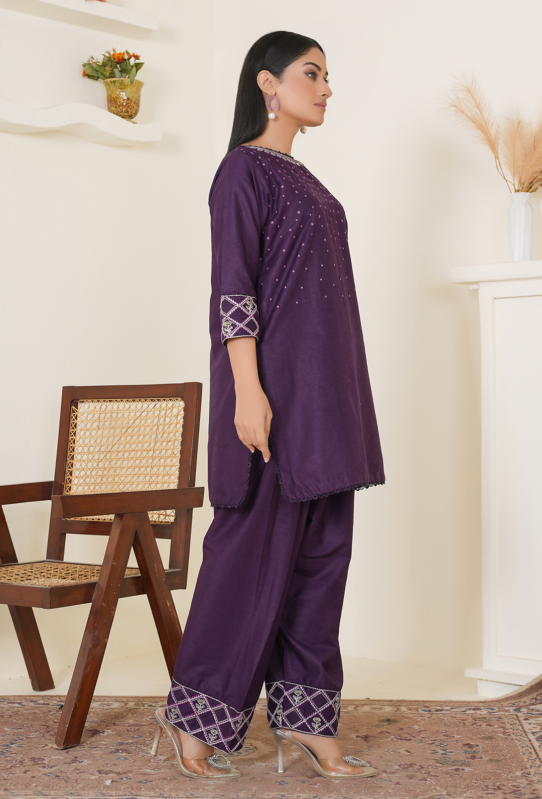 - Design: Embroidered Short Shirt Paired with Traditional Farshi Shalwar