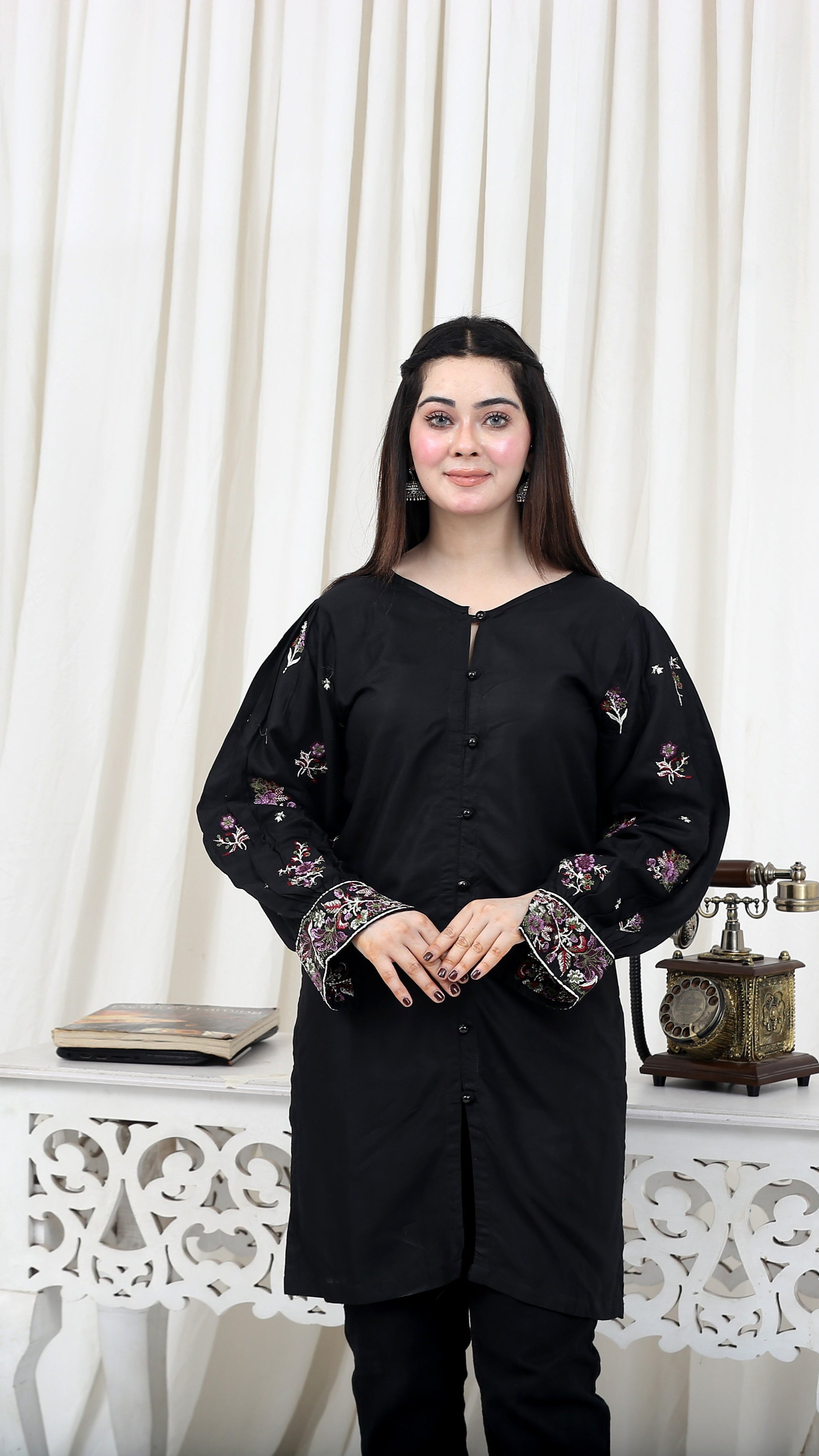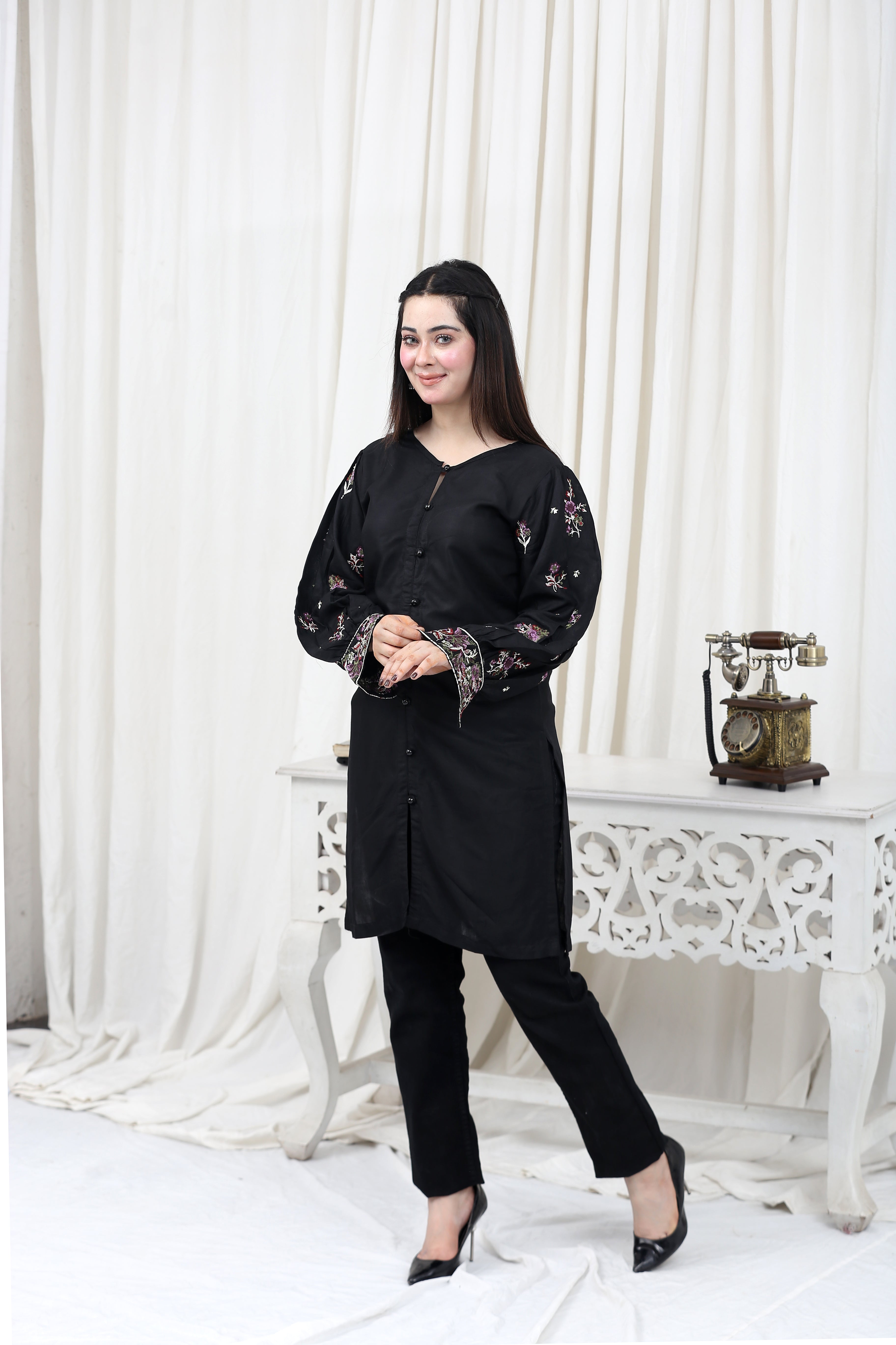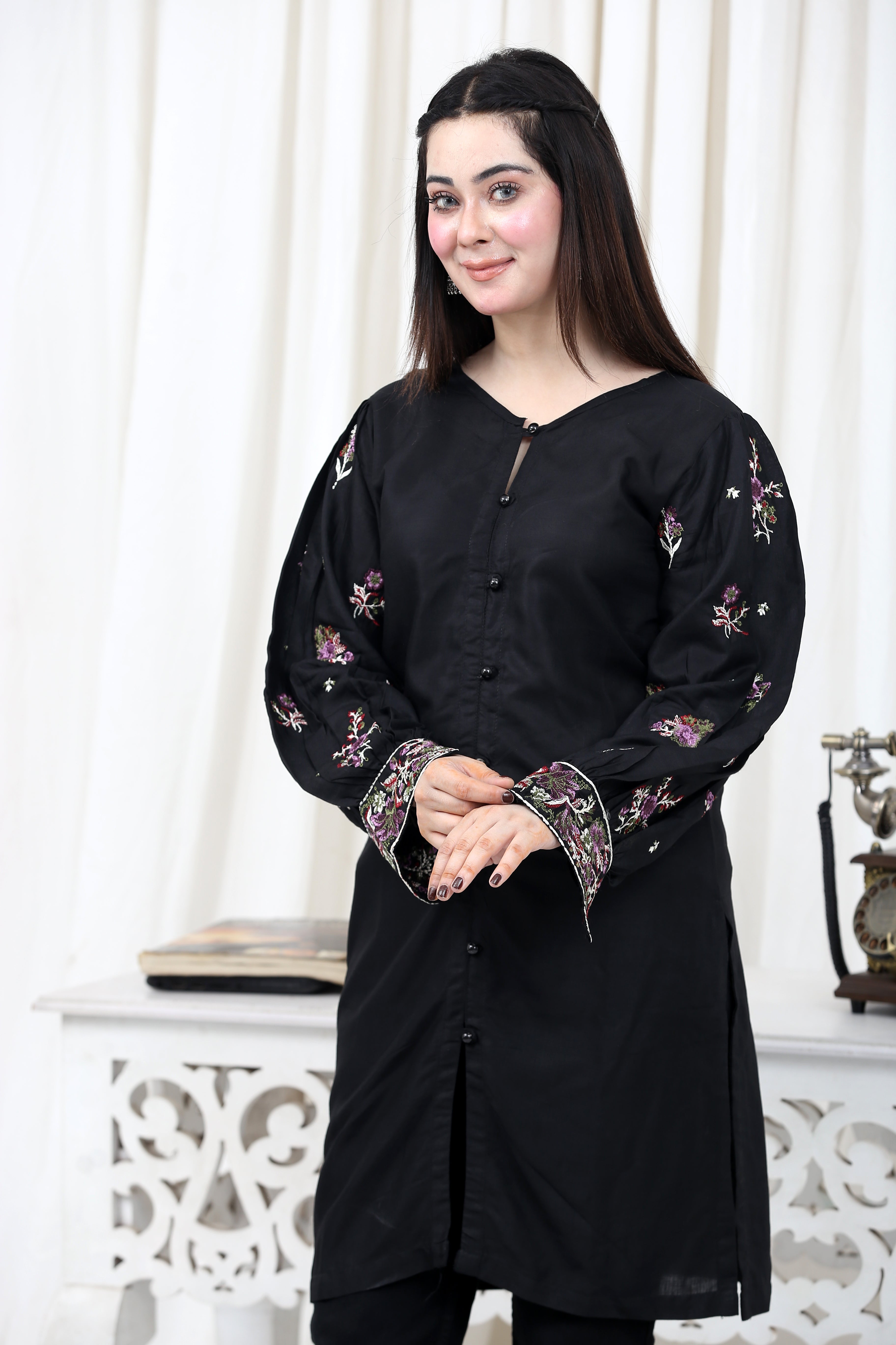 - Linen Shirt with Intricate Embroidery