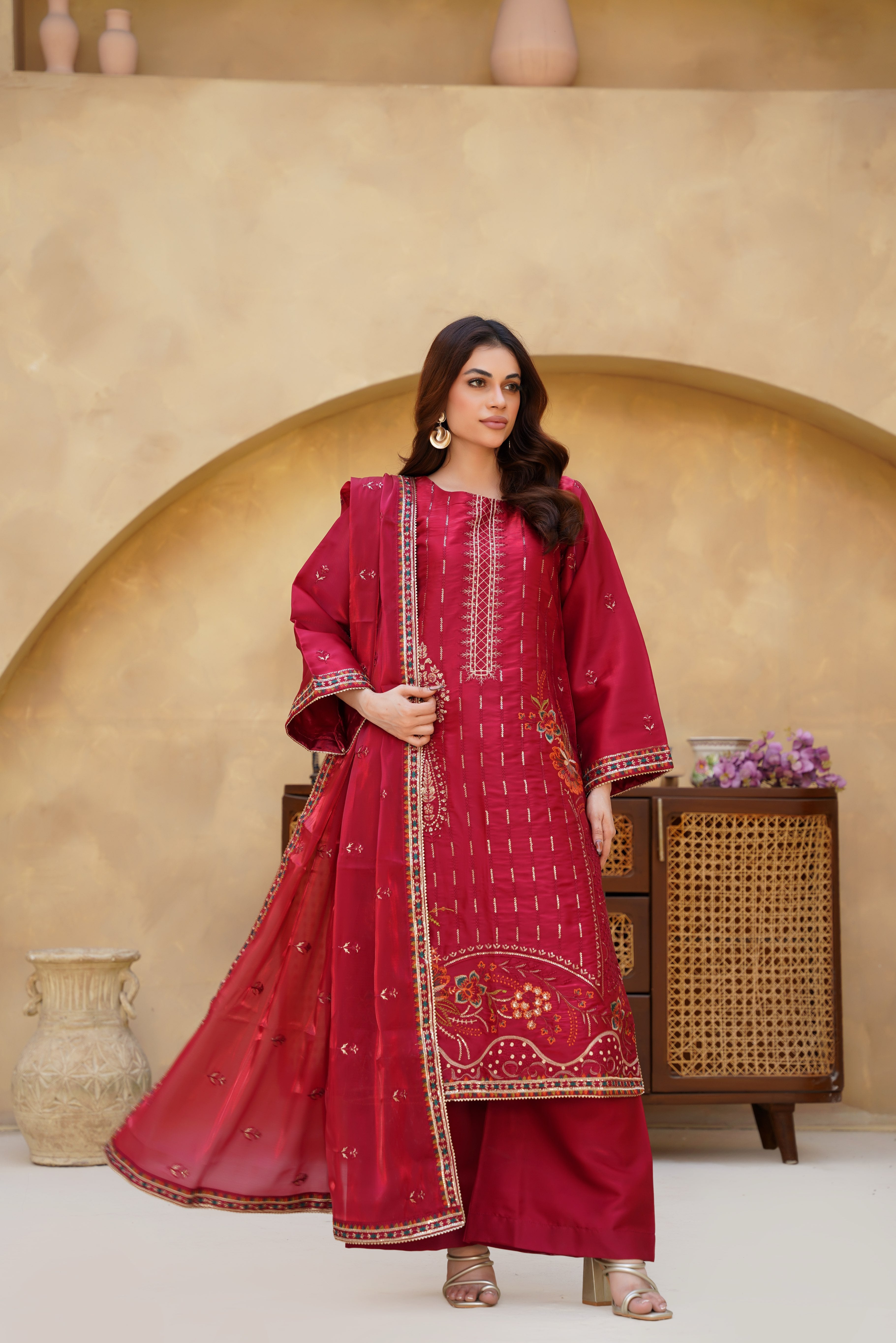 • Fabric: Premium Sheesha Silk Shirt & Dupatta with Tassel Silk Finish